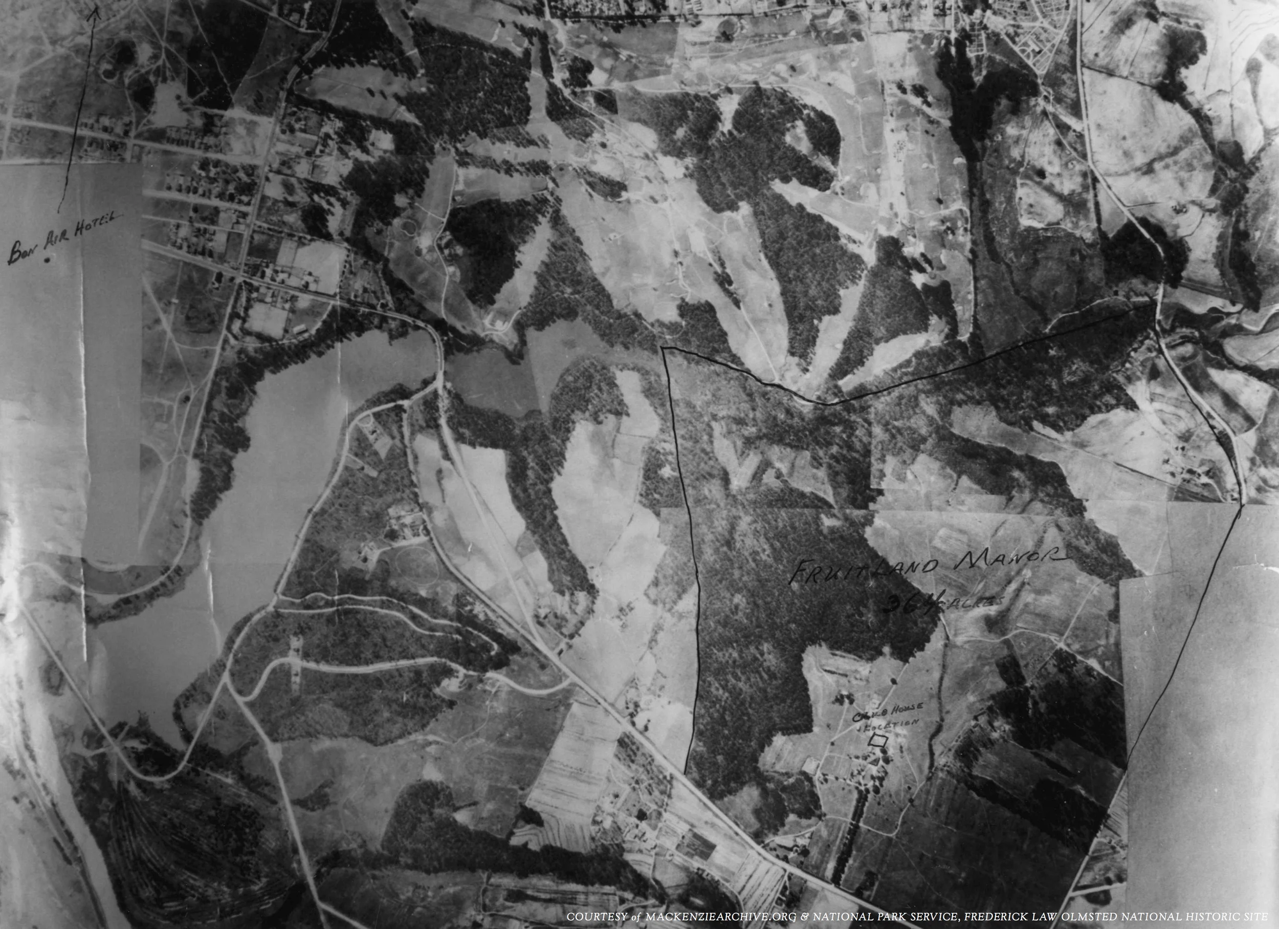 1931 Aerial Photo Showing the Fruitland Manor Property (Courtesy of National Park Service, Frederick Law Olmsted National Historic Site)